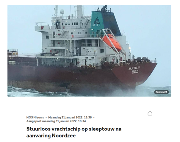 Een spraakmakende zaak die dit illustreert is die van het motorschip “Julietta D”, dat tijdens storm Corrie op 31 januari 2022 van haar anker losgeslagen raakte en meerdere objecten raakte op de Noordzee.
